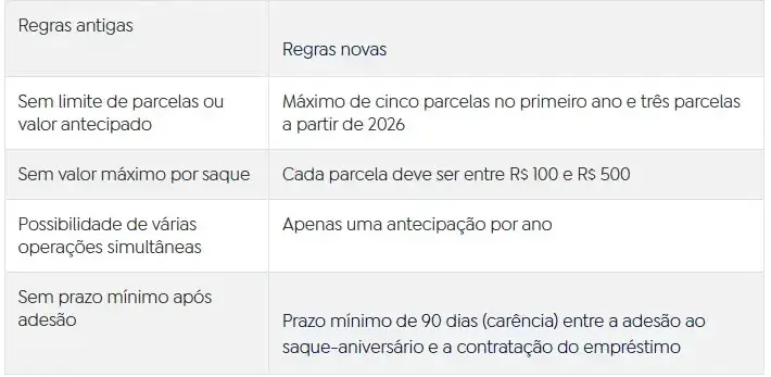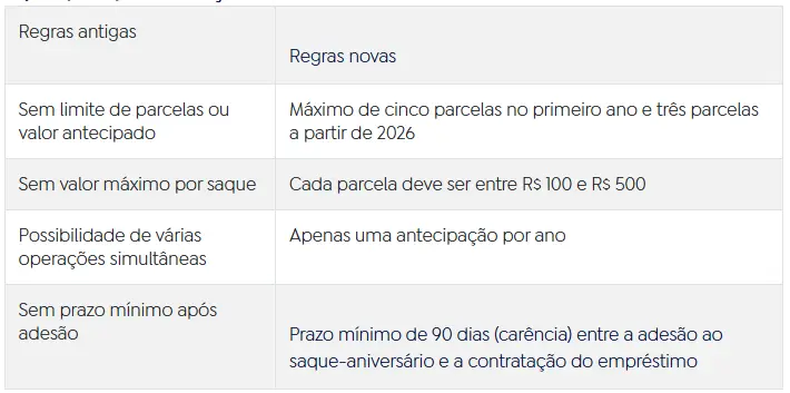 As novas regras que limitam a antecipação do saque-aniversário do Fundo de Garantia do Tempo de Serviço (FGTS) entram em vigor neste sábado (1º).